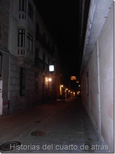 Oyó que los pasos de su perseguidor también se aceleraban. En el silencio de la noche por las estrechas callejuelas Leandro corrió muy asustado hasta que consiguió llegar al portal de su edificio. Al llegar a su vivienda se asomó con precaución por el balcón pero no vio a nadie, su perseguidor había desaparecido.